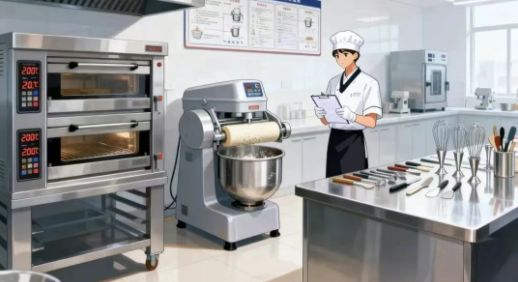 西点设备是良伴,规范操作保安全,定时养护状态满,甜香出品更惊艳。实训室里设备全,烤箱揉面裱花专,轻开轻关细维护,美味制作不耽误,西点设备勤照料,温度转速校准好,无污无漏无故障,实训创作更顺畅。...